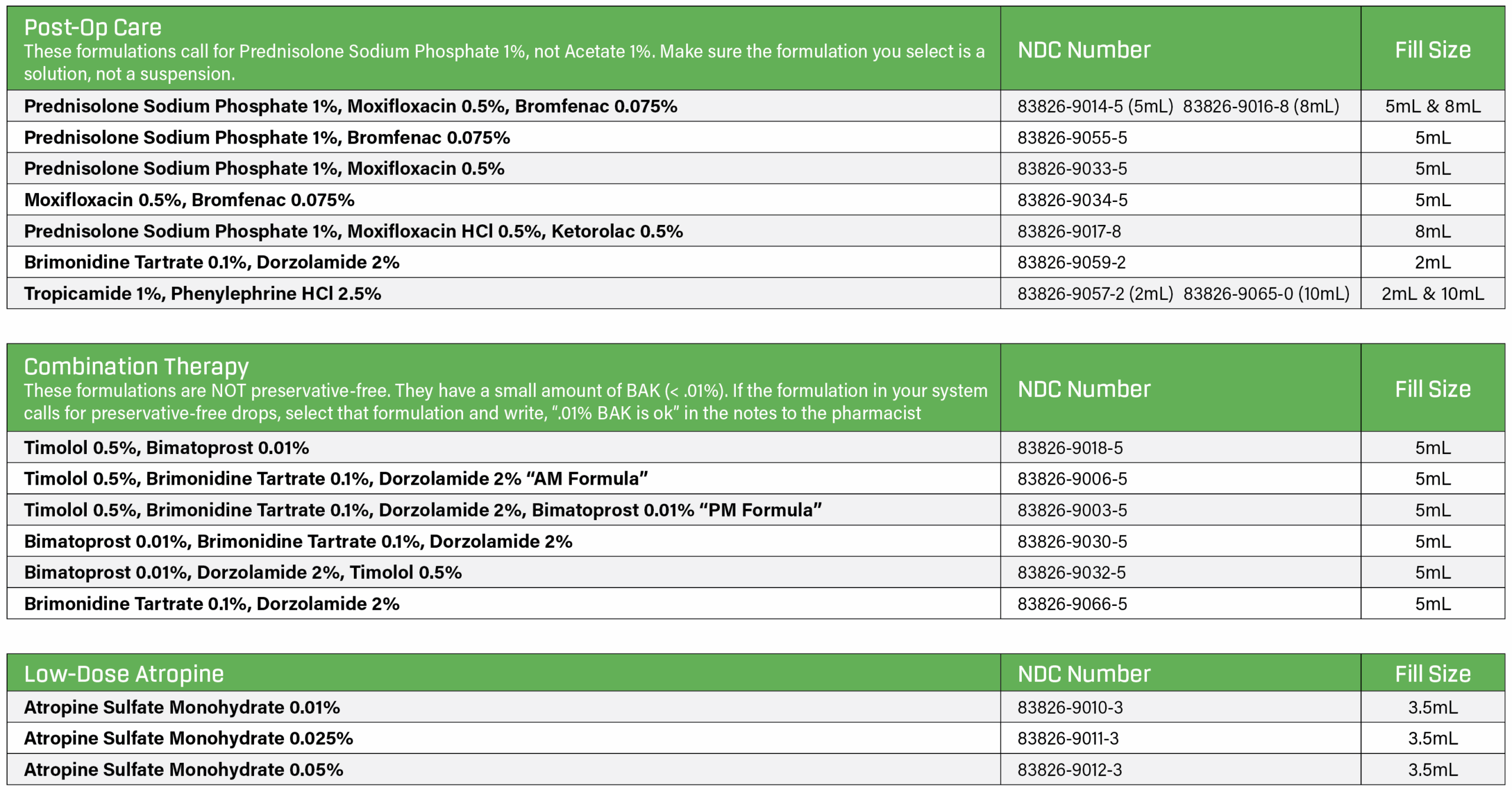 • As a last resort, try sending us a script for prednisolone 1% and add the rest of the formula in the notes section. – For example: Select prednisolone 1%, 5mL, and in the notes section put “add bromfenac 0.075%, prednisolone phosphate and 4.0mL is ok”.